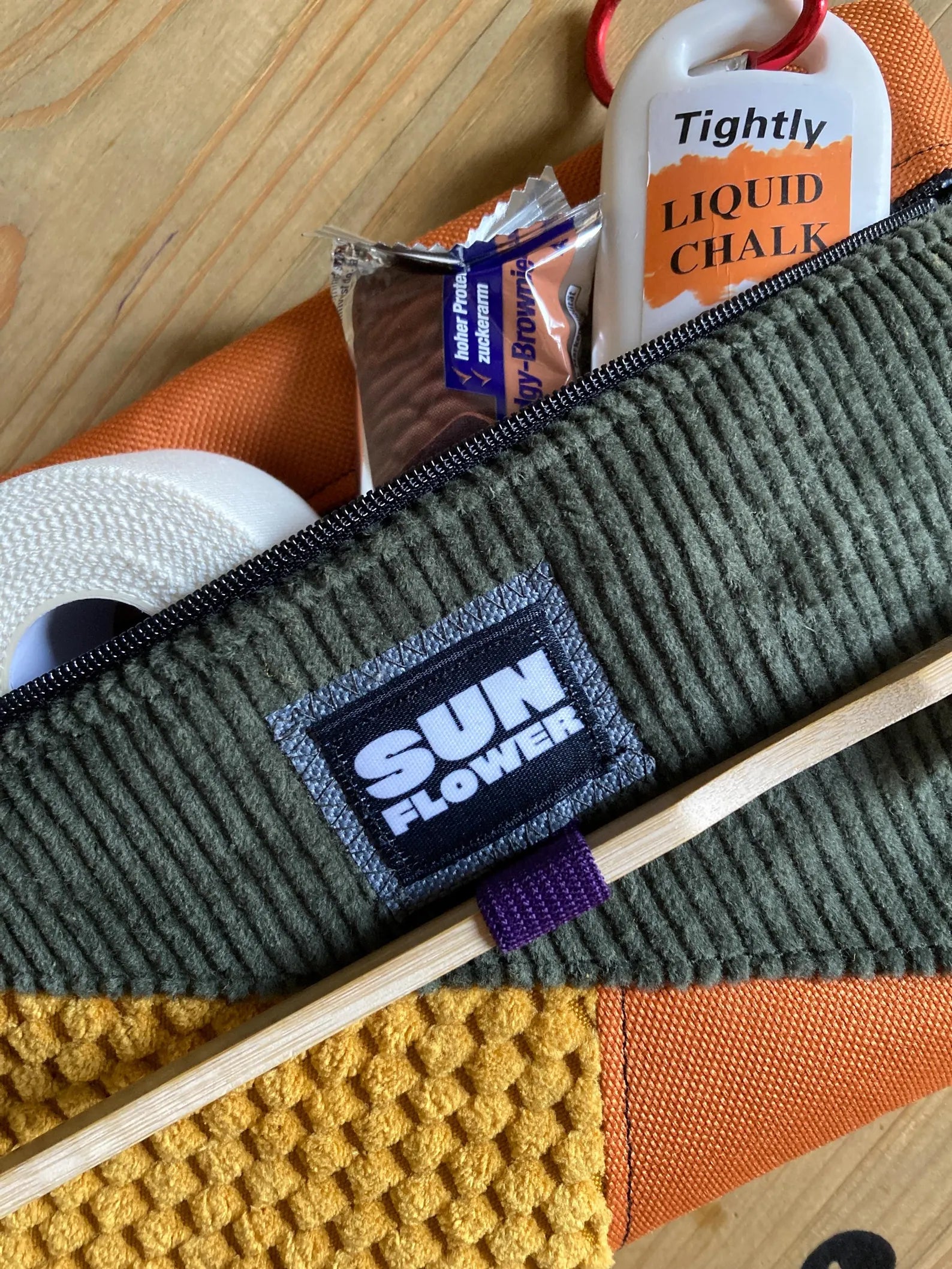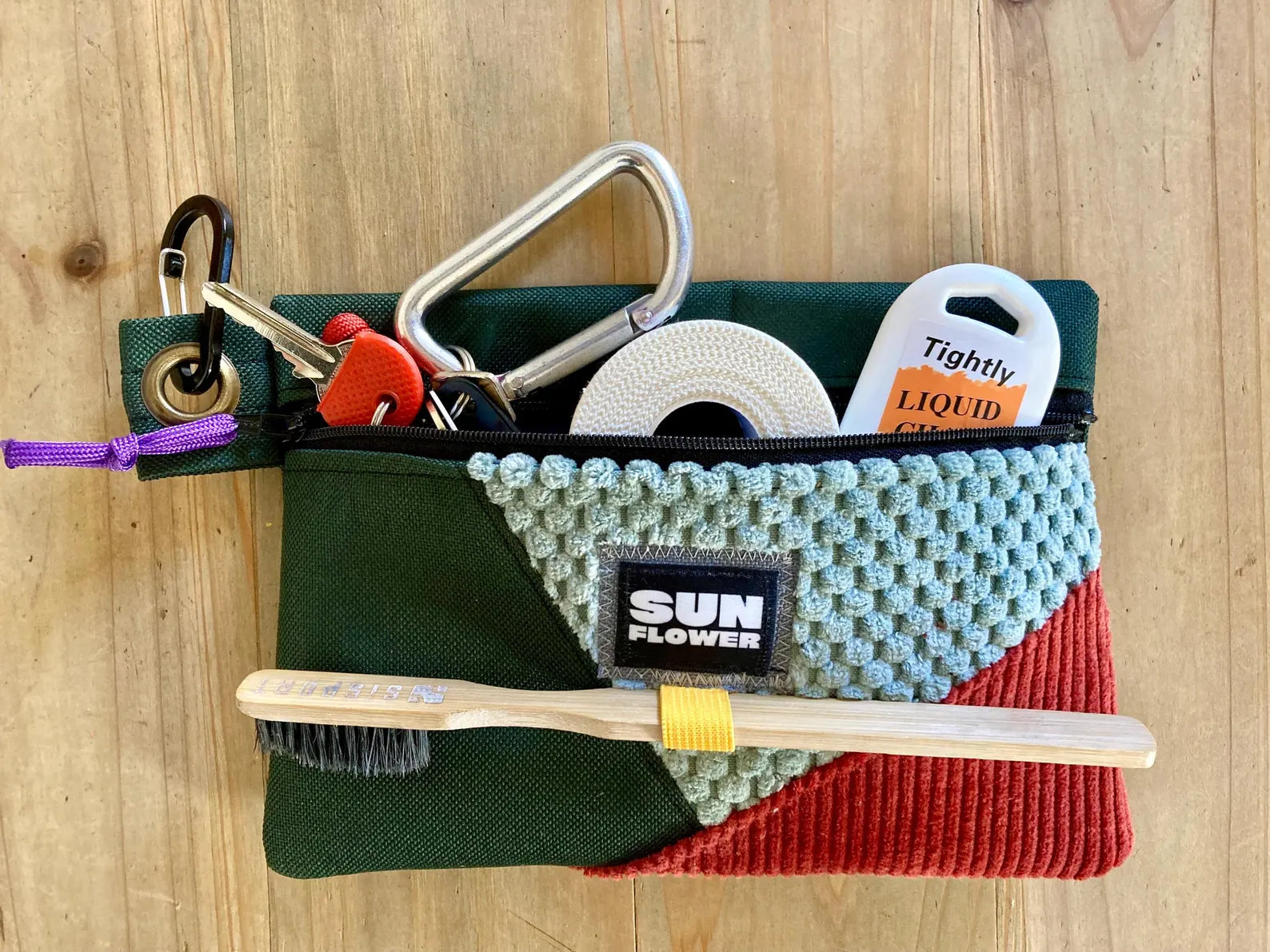 Borsa compatta e funzionale per la palestra e il boulder. Pur essendo di piccole dimensioni, è abbastanza capiente da contenere magnesite liquida, scotch, chiavi, earphones, smartphone e tutte quelle piccole cose che rischiano di perdersi durante l'allenamento. È dotata di un occhiello per moschettone, che la rende ancora più comoda, e di una taschina frontale ideale per gli oggetti più piccoli.