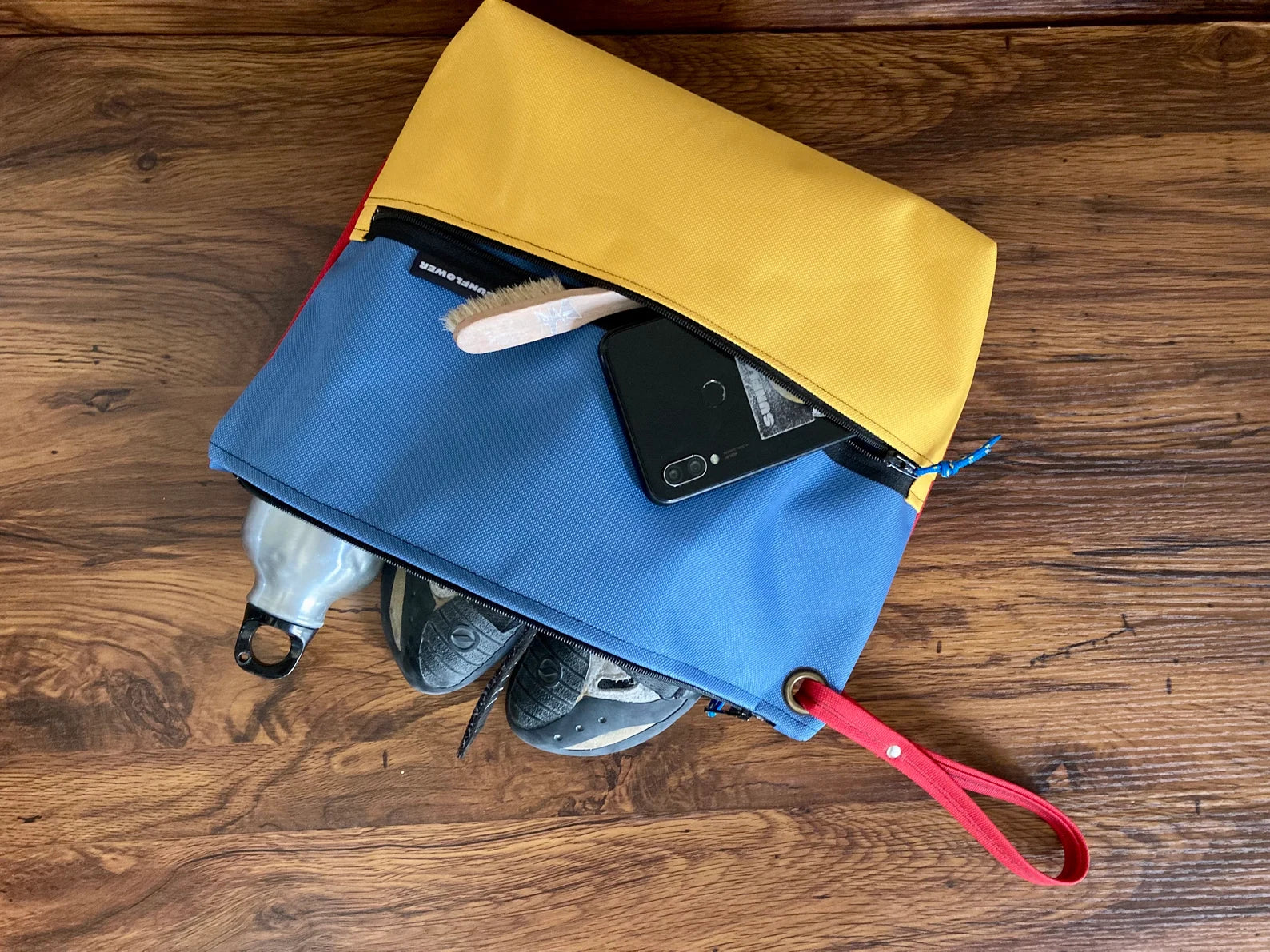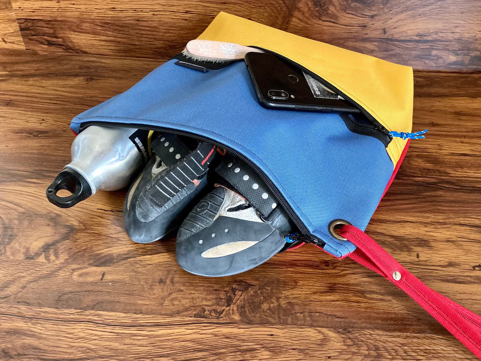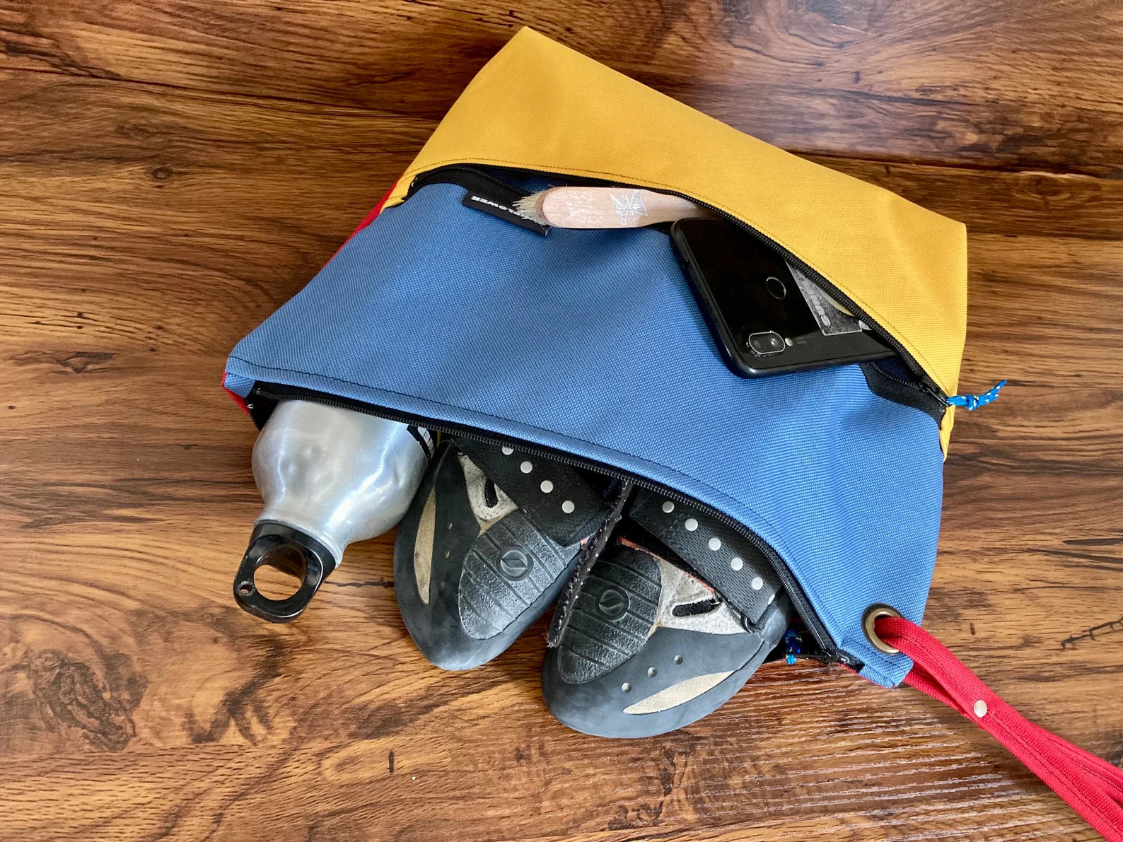 Borsa pensata per la palestra e il boulder. È pratica e comoda, e permette agli atleti di avere tutto a portata di mano senza perdere le loro cose, come magnesite, scarpette, chiavi, tessera d’ingresso, borraccia, scotch per le dita o spazzolino. La sua capienza è perfetta: abbastanza grande da contenere tutto l’occorrente per una sessione di allenamento, ma compatta il giusto per essere comoda da trasportare all’interno della palestra.